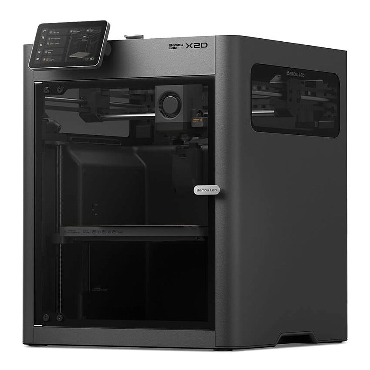 Bambu Lab X2D — это следующее поколение серии X1. Главное нововведение — система с двумя соплами, которая разделяет задачи: основное сопло создает модель, а вспомогательное — печатает поддержки. Деталь готова к использованию сразу после печати — шлифовать или зачищать места контакта с поддержками не требуется.